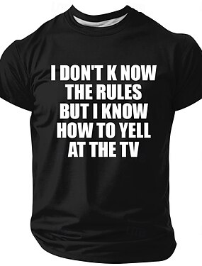 Мужская футболка с надписью «Я не знаю правил, но знаю, как кричать на телевизор», футболка черного цвета с графическим принтом, круглый вырез, футбольный турнир, дизайнерская одежда, размеры S M L XL