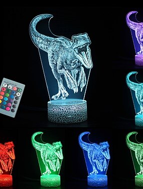 ночник с динозавром для детей, 3d ночник с иллюзией, 16 цветов, меняющихся с помощью пульта дистанционного управления, декор для комнаты, подарки для детей, мальчиков и девочек