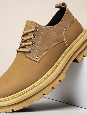 Мужские желтые ботинки из искусственной кожи на шнуровке из нубука с мягким воротником и толстой подошвой, повседневная рабочая обувь для походов, кемпинга и повседневного использования