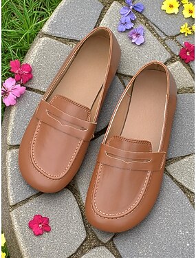 женские широкие коричневые мокасины – классические туфли без застежек, обеспечивающие комфорт, идеально подходят для поездок на работу и повседневного использования