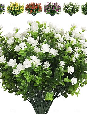 24 искусственных цветка для улицы, пластиковые цветы для украшения, устойчивые к УФ-излучению искусственные кустарники, искусственные растения для дома, сада, дома, свадьбы, загородного дома (6