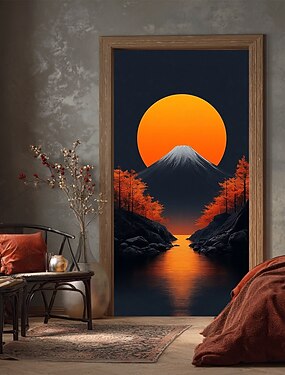 Плакаты Дверная крышка Наружные баннеры Водопад Осенний пейзаж 3D Японский Общежитие Комната для подростков Общежитие колледжа Спальня в мужском общежитии "Пещера" Фоны для съемки Входная дверь