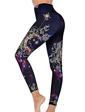 Жен. Штаны для йоги Подтяжка Утягивание живота Завышенная Тренировка в тренажерном зале Бег Фитнес Велоспорт Колготки Леггинсы Космический принт Темно-лиловый: Осень Зима Виды спорта Спортивная одежда