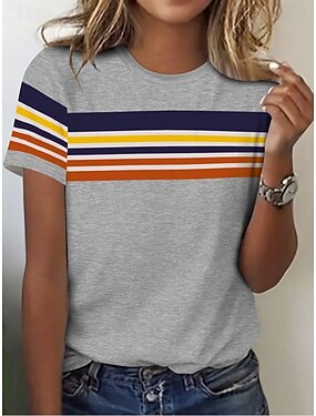 День Святого Валентина Жен. Футболка С принтом Полоски Стиль Классика На каждый день С короткими рукавами Вырез под горло Обычные топы Повседневные Белый Коричневый Серый Лето Весна
