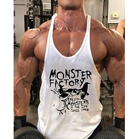 Муж. Графика Буквы Тренировочная майка Майка для бега Майка для занятий в спортивном зале Лето Без рукавов Быстровысыхающий Влагоотводящие Тренировка в тренажерном зале Активное обучение Упражнение