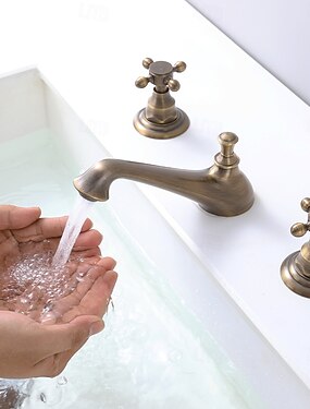 Ванная раковина кран - Широко распространенный Электропокрытие Разбросанная Две ручки три отверстияBath Taps