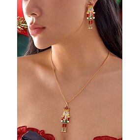 Женский рождественский комплект украшений «Щелкунчик», ожерелье и серьги в виде солдатиков из эмали золотого тона, праздничный аксессуар для зимних вечеринок, подарки &наряды