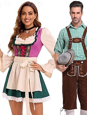 Пары Октоберфест пивной костюм дирндль платье trachtenkleider Lederhosen Октоберфест Пара немецкий Мюнхен Wiesn мужские женские традиционные стильные ткани Хэллоуин карнавал