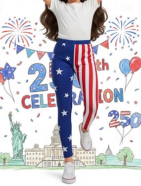 Девочки 3D Графика Флаг Брюки Леггинсы 3D печать Весна Осень Уличный стиль Классический Колготки Дети 4-12 лет Повседневные на открытом воздухе Отпуск Стандартный
