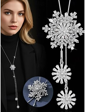Женское ожерелье с подвеской в виде снежинки – элегантное длинное цепочное украшение с кристаллами для женщин, зимняя мода и рождественский подарок