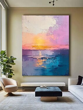 Ручная работа Hang-роспись маслом Ручная роспись Квадратный Абстракция Пейзаж Современное Без внутренней части рамки (без рамы)