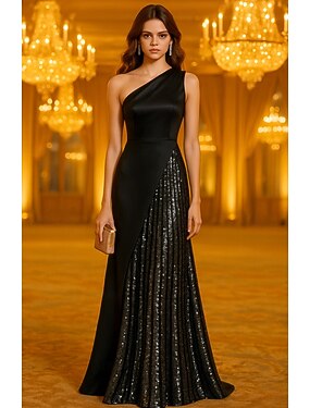 Футляр В пол Выпускные платья Вечернее платье С пышной юбкой Торжественное платье Элегантный стиль Без рукавов На одно плечо Торжественное мероприятие Гость на осенней свадьбе Сатин С открытой спиной