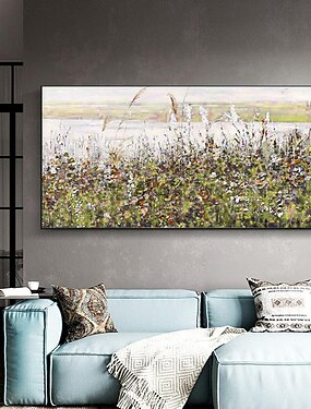 ручная роспись маслом холст настенное искусство украшение абстрактная растительная живопись зеленая лаванда для домашнего декора свернутая бескаркасная нерастянутая картина