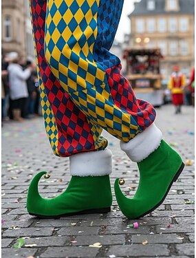 Женские закругленные носки из зеленого бархата с перьями и колокольчиками для карнавальных вечеринок косплея и праздничных костюмов