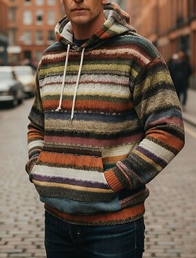 Новогодняя тематика Муж. Горизонтальные полосы Толстовка Мода Повседневные На каждый день Длинный рукав Капюшон Отпуск Для вечеринок Уличная одежда фестиваль Цвет радуги Рисунок Осень Зима Дизайнер S
