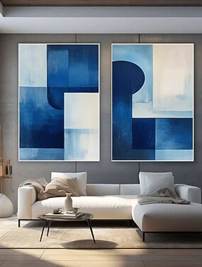 большая картина маслом, ручная роспись на стене, абстрактное искусство, геометрические картины на холсте, настенное искусство, темно-синее настенное искусство, ручная роспись, минималистская живопись,