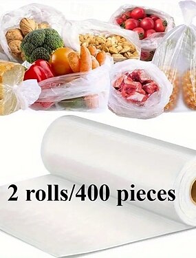 2 рулона / 400 шт. больших прозрачных одноразовых пакетов для хранения продуктов — идеально для супермаркетов &магазины у дома