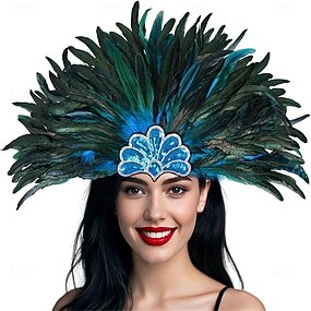 Карнавалы 2026 Рио карнавальные аксессуары Головной убор из перьев цвета павлина и зеленый для женщин Карнавальная танцевальная принадлежность для фестиваля Марди Гра костюм для выступлений на