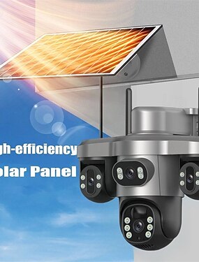 8-мегапиксельная камера видеонаблюдения с тремя объективами, питанием от солнечной батареи, двумя солнечными панелями, водонепроницаемая, ночное видение, обнаружение движения &двусторонняя аудиосвязь