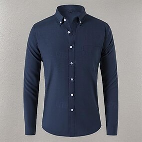Муж. Рубашка Летняя рубашка Кнопка рубашка Повседневная рубашка Черный Белый Темно синий Синий Серый Длинный рукав Полотняное плетение Воротник с уголками на пуговицах (button-down) Праздники Отпуск