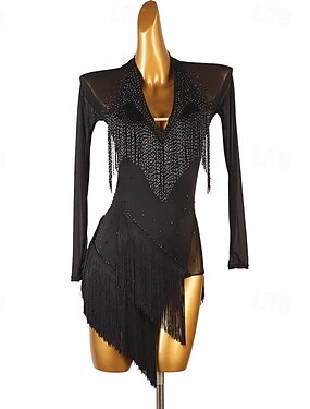 Латино Платье С кисточками Стразы Жен. Выступление Длинный рукав Спандекс