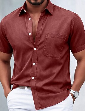 Муж. Рубашка Повседневная рубашка Выцветшая рубашка Окрашенная одежда Рубашка из 100% хлопка с кислотной стиркой Черный Белый Розовый Бордовый Темно синий С короткими рукавами Полотняное плетение