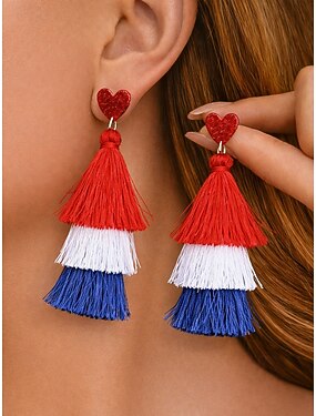 Женские серьги с полиэстеровыми кисточками, в разных стилях, в цветах американского флага (красный, белый и синий), патриотические украшения, идеально подходят для 250-летия США, Дня независимости и повседневной носки.