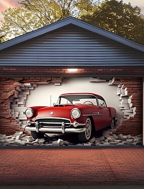 классический красный винтажный автомобиль 3D иллюзия разбитой кирпичной стены ретро автомобильный стиль гаражные ворота баннер наружное украшение стены подарок для мужской комнаты фреска для