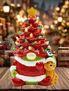 Рождественские украшения - светящиеся гномы из смолы рождественская елка с многоцветными огнями маленький миниатюрный предсвечник на рождество для декора стола в доме комнате столе камине офисе