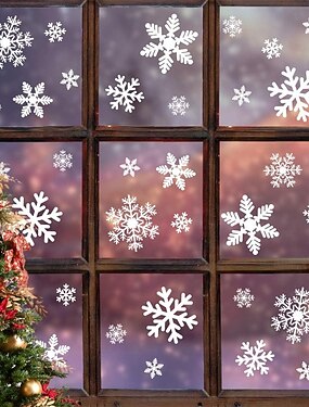 135 шт. рождественских наклеек на окна, снежинок, наклеек на окна, статических наклеек на окна для рождественских украшений, декора окон, украшений, товаров для рождественской вечеринки, декора для
