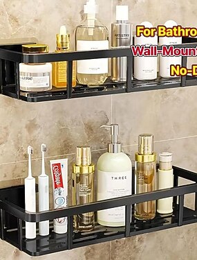 2 шт. черные настенные полки без сверления - прочная водонепроницаемая пластиковая полка для душа, компактная полка для хранения в ванной комнате, подходит для небольших ванных комнат, простая