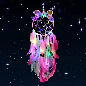 Единорог Ловец снов с красочной светодиодной подсветкой для девочек и мальчиков декор стен спальни висит украшение фестиваль подарок (розовый)