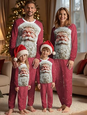 Дед Мороз Семейная рождественская пижама Пижамы Муж. Жен. Мальчики Девочки Одинаковые семейные наряды Милая Рождество Узор Взрослые Детские Рождество Новый год Рождественский сочельник