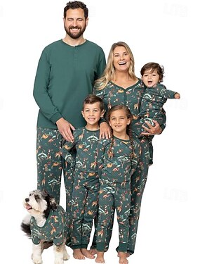 Семейный вид Новогодняя тематика Рождественская семейная пижама Пижамы Семейные наборы Графика В снежинку Дом С принтом Темно-зеленый Зеленый Длинный рукав Повседневные Подходящие наряды