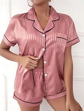 Жен. Домашняя одежда пижама Мода На каждый день Графика Эластичная талия Пуговицы Шорты Дом Отпуск С короткими рукавами Лацкан Светло-розовый Белый Розовый Бежевый Лето Весна Осень Стандартный