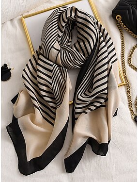 Женский полосатый шарф из хлопка и льна – мягкий, легкий материал, доступен в нескольких цветах, идеально подходит для повседневных и зимних образов.