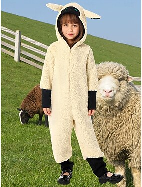 Карнавальный костюм 2026 г. Пижамы кигуруми Комбинезоны Овечья шерсть Лампа Фейри Тейл Животный принт Косплей Детские Девочки Хэллоуин Карнавал