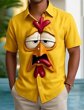 Муж. Петух 3D в мультяшном стиле Улыбающееся лицо Рубашка Кнопка рубашка С короткими рукавами Веселая Праздники Лето Весна Отложной 3D печать рубашки с воротником Оранжево-желтый Желтый Оранжевый