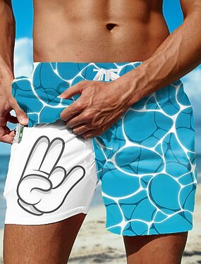 Муж. Морская вода Мультяшный отпечаток руки Шорты с подкладкой Плавки 2 в 1 Купальные шорты Нормальная Гавайский Праздники Одежда для пляжа