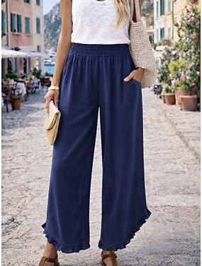 Жен. Брюки из хлопка и льна Широкие Чино Отпуск Уличный стиль Классический Полная длина Нормальная Полотняное плетение Карман Эластичный пояс Удобный Дышащий Неэластичная