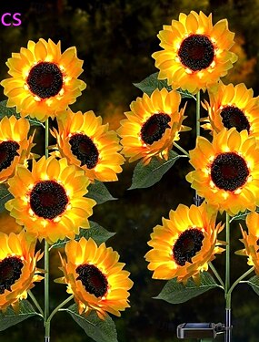 4 комплекта уличных водонепроницаемых солнечных светильников в виде подсолнухов с 3 плафонами, декоративные светодиодные лампы для сада, двора, дорожки, газона, виллы, патио, улицы, фермы – мягкое