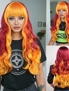 Парики из искусственных волос Волнистый Крупные кудри Стрижка каскад С чёлкой Машинное плетение Парик 24 дюймы A1 Искусственные волосы Жен. Классический Удобный Градиент цвета Разноцветный