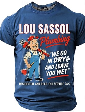 Мужская футболка Lou Sassol с забавным юмористическим рисунком для взрослых: «Мы заходим сухими, а оставляем вас мокрыми», шутка про сантехника, ретро-мультяшная футболка для рабочего, повседневная