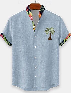 Муж. Пальмовый лист Кокосовая пальма Тропические растения Рубашка Льняная рубашка Летняя рубашка С короткими рукавами Гавайский Отпуск На каждый день Лето Весна