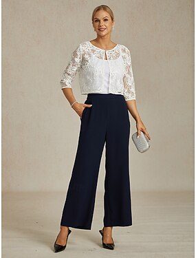 Платье для вечеринки длины чай A-Line коктейльное платье платье для гостей на свадьбу платье для матери невесты рукав 3/4 круглый вырез элегантное винтажное формальное платье из кружева с кружевом