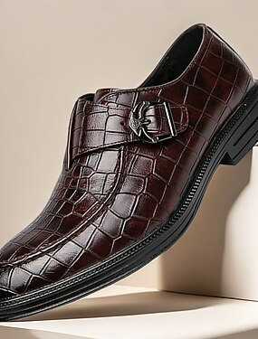 Мужские классические туфли из искусственной кожи коричневого цвета с крокодиловым рисунком – роскошная деловая, вечерняя и свадебная обувь для стильных мужчин.