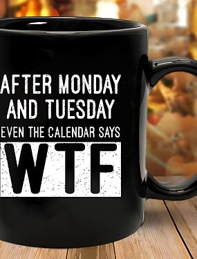 Забавная подарочная кружка «После понедельника и вторника даже календарь говорит: "Что за фигня?"» Черная керамическая кофейная кружка. Забавный подарок для выживания в рабочую неделю для любителей