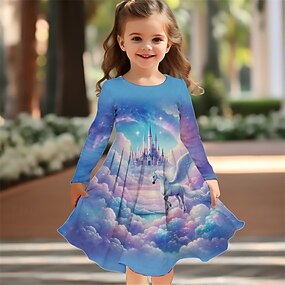 Девушки ' 3D единорогом Платье Длинный рукав Лето Весна Отпуск Повседневные Праздники Принцесса Красивый Милая Дети 4-12 лет Повседневное платье Платье A-силуэта До колена Стандартный