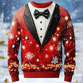 Новогодняя тематика Муж. Новогодние костюмы Толстовка Длинный рукав Толстовка Вырез под горло Для вечеринки Веселая 3D печать Для вечеринок Для спорта и активного отдыха Праздники Crewneck