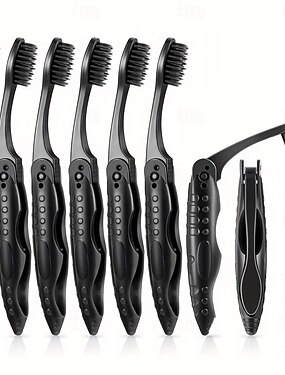 Набор из 8 черных складных дорожных зубных щеток, портативных зубных щеток с активированным углем, с мягкой щетиной средней жесткости, идеально подходит для поездок и кемпинга, а также для ежедневного